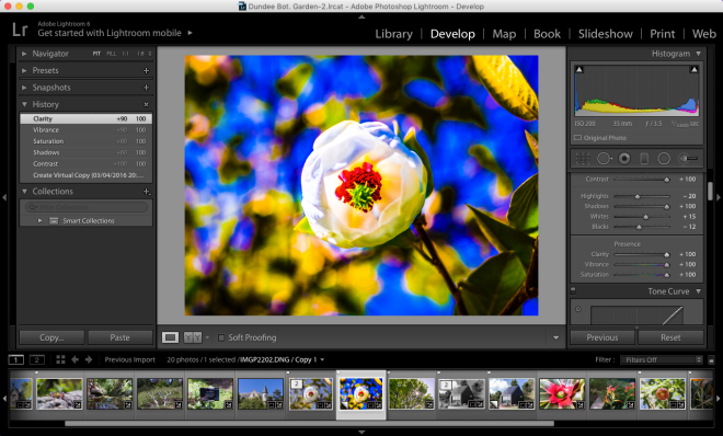 But let’s for a second follow this approach and equate what the average human eye sees with what is ‘real’: the ugly truth is that in the vast majority of cases it is unachievable without any kind of editing. Your digital camera is a technological device, focusing light through a lens onto a sensor that records incoming photons and relays this information to an image processor. From this it should be blatantly obvious that what your camera captures cannot be the same your eye, a biological organ, sees. The image recorded by your camera is usually rather dull, lacking in contrast and saturation, having no determined white balance etc., so it needs to be edited to some extent. This is a crucial step, and one that a lot of people are completely unaware of. Modern cameras are essentially little computers, and every JPEG they produce they have edited first, increasing the contrast and saturation, reducing noise, applying some sharpening, setting a white balance. The problem here is that your camera decides how to edit the pictures, and what it thinks is best for your images might not necessarily produce the result you are after. I actually once came across someone in an online forum proudly declaring to be “too much of a purist” to edit his images, a comment which I sardonically replied to: “Leaving the editing to your camera doesn’t make you a purist, it just makes you lazy.” Even photographers sometimes make the mistake of claiming JPEG OCC (meaning ‘JPEG out of camera’) to be ‘real’, when in fact it is simply the result of you leaving the editing to your camera. And often even this editing is unable to match what our eyes see, so careful, targeted adjustments are necessary in order to achieve this. As a matter of fact, the time spent editing an image and the sophistication of adjustments is not necessarily correlated to how natural the result will look in the end. It takes me a mere 30 sec. or so to crank up a couple of sliders in Lightroom or Photoshop and turn an image of a flower into a crazy surrealist nightmare, but I may have to tweak the same image for several minutes in order to produce a pleasing yet natural result.