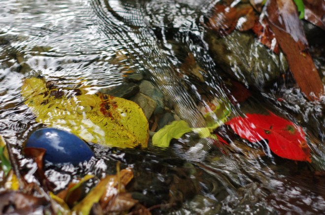 When travelling along the Australian coast with my family over two years ago one of our first stays was Daintree. This rainforest that lies somewhere in between Cairns and Cape York is the oldest in the world and a UNESCO world heritage site of immense biodiversity. Lush and full of life, abound with exotic flowers, enormous ferns and pristine gurgling creeks it is possibly the most beautiful place I have ever seen. Unfortunately we only stayed for two days, but the lodge happened to have had access to a creek that we were assured was not infested with the ubiquitous crocodiles, so my father and I went for a swim. The water was crystal clear, a concert of birds and insects surrounded us and little fish nibbled at our feet. Just a couple of days earlier I had bought my first lens (excluding the kit lens that came with the camera), an old manual Pentax SMC-A 50 f/1.7 (reviewed here), and eager to try it out I shot a couple of images at the creek. The one above is one of them. I concentrated on the contrast in colour between the blue cassowary plum (Cerbera floribunda) and the yellow and red leaves, as well as the clear water.